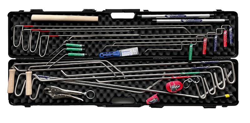 Das für alle Anwendergruppen und Fahrzeugtypen optimal abgestimmte Profiwerkzeug zur lackschadenfreien Beseitigung von Park- & Hagelschäden. Aus handwerklicher Fertigung – produziert in Schweizer Werkzeugmanufaktur.